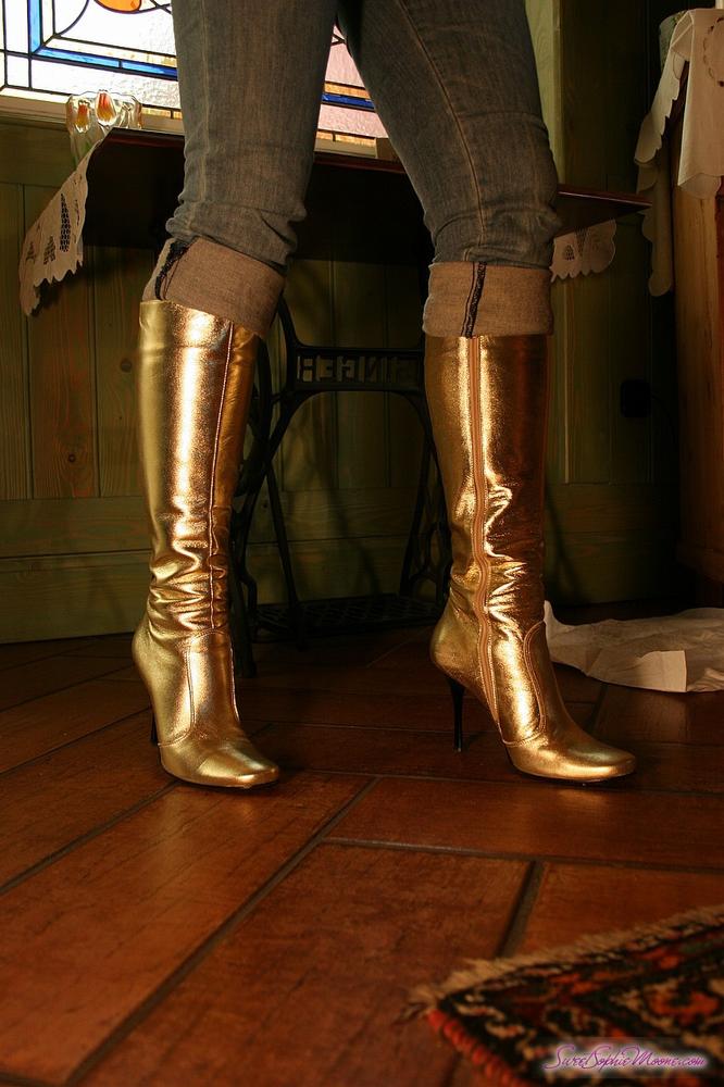 Sophie Moone takes her tight blue jeans off and then shows us her fantastic ass.