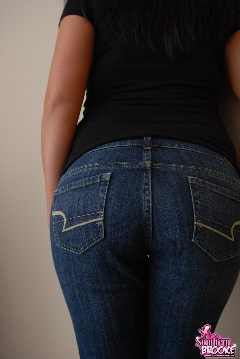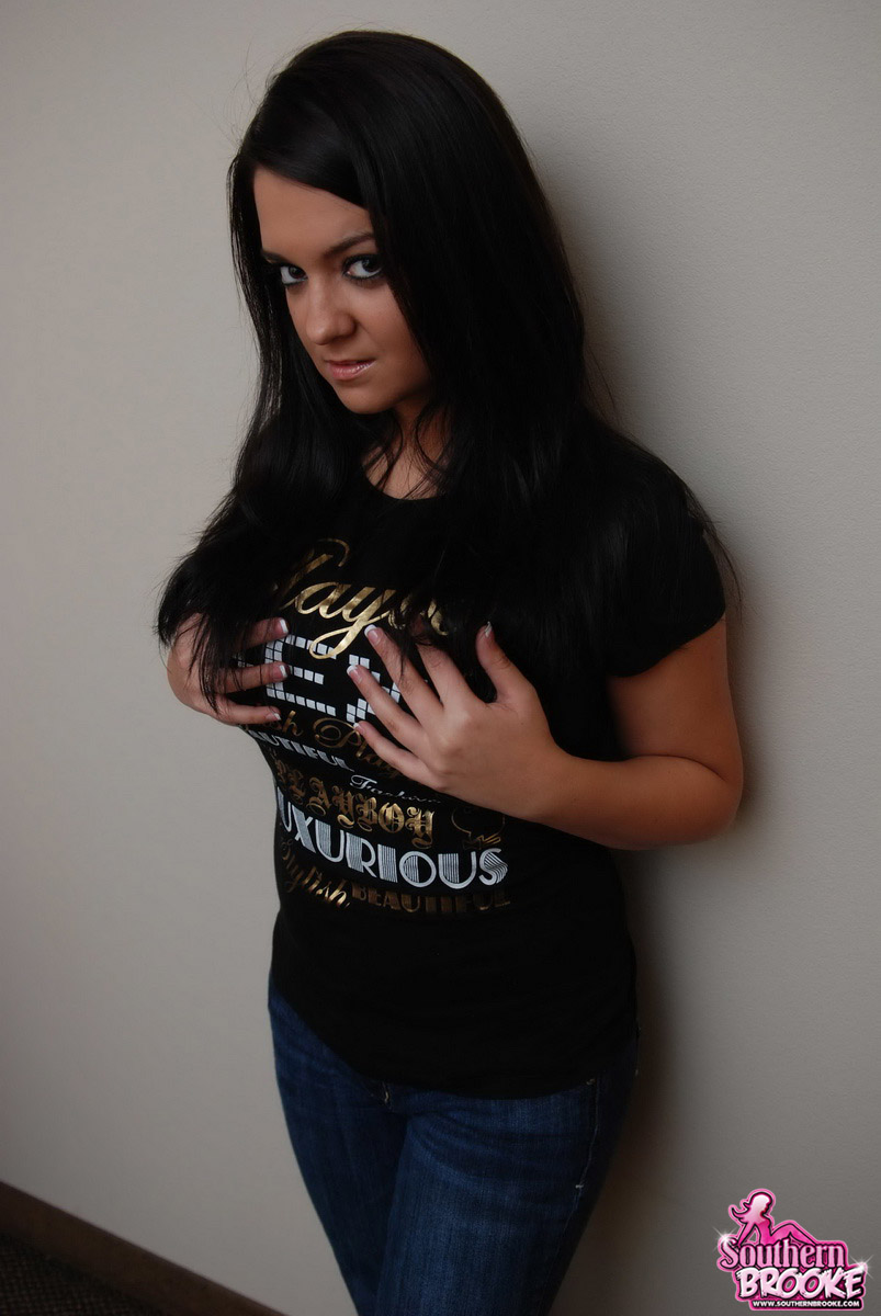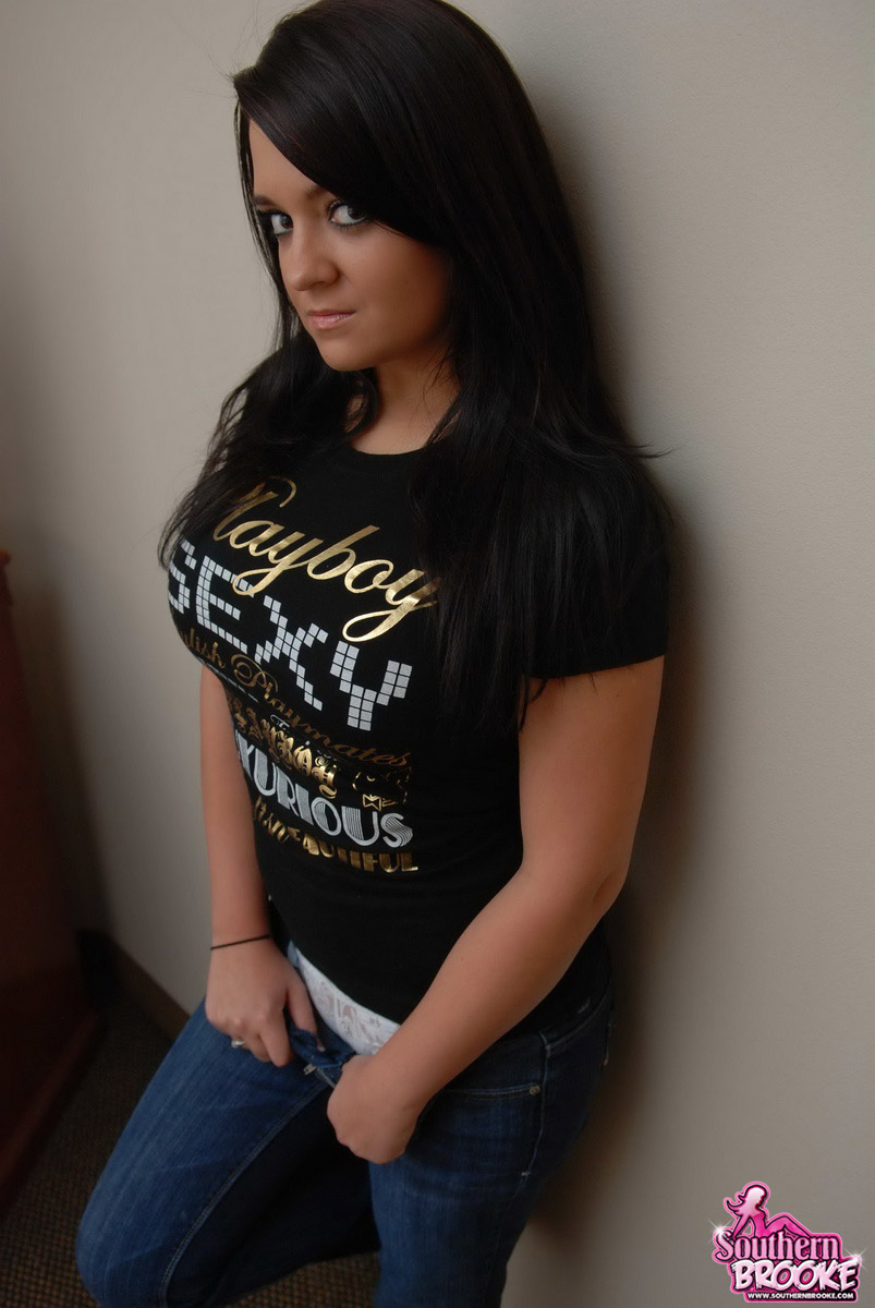 Big breasted teen hottie Southern Brooke strips her tight blue jeans and shows off.