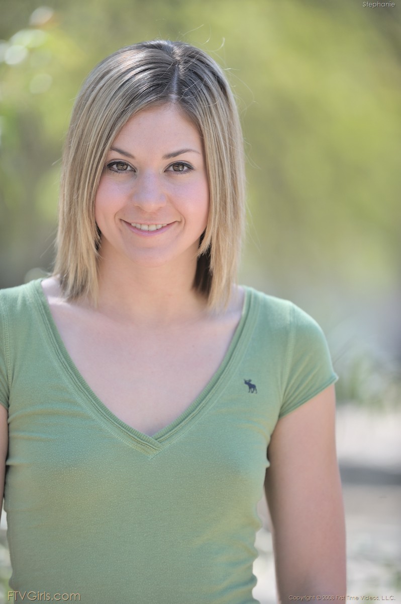 Sexy blonde Stephanie Sage lifting texas skirt and showing shaved pussy and nice tits.
