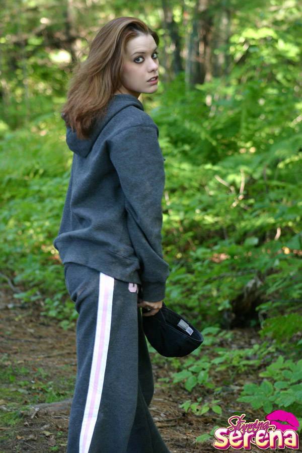 Stunning Serena goes for a walk in a local forest to pose naked and orgasm there.