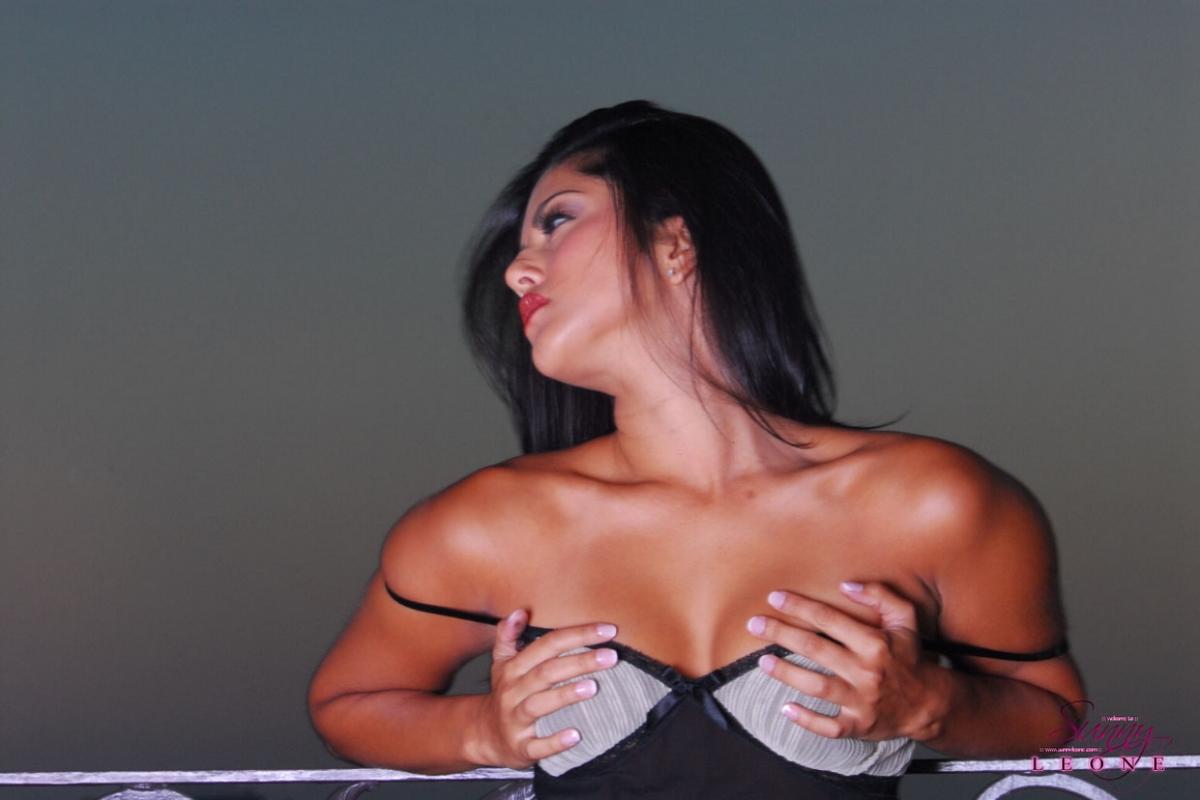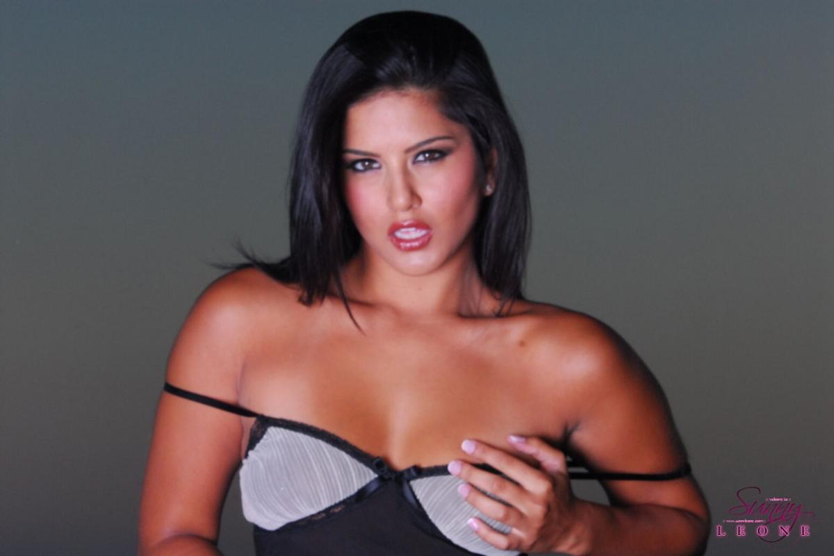 Sunny Leone takes her sexy black dress before the camera and shows us her boobs.