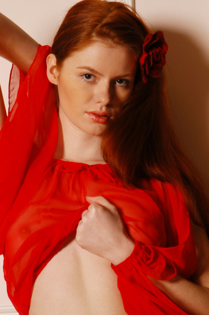 Tanya I takes her sexy red lingerie off and shows us her perky little breasts.