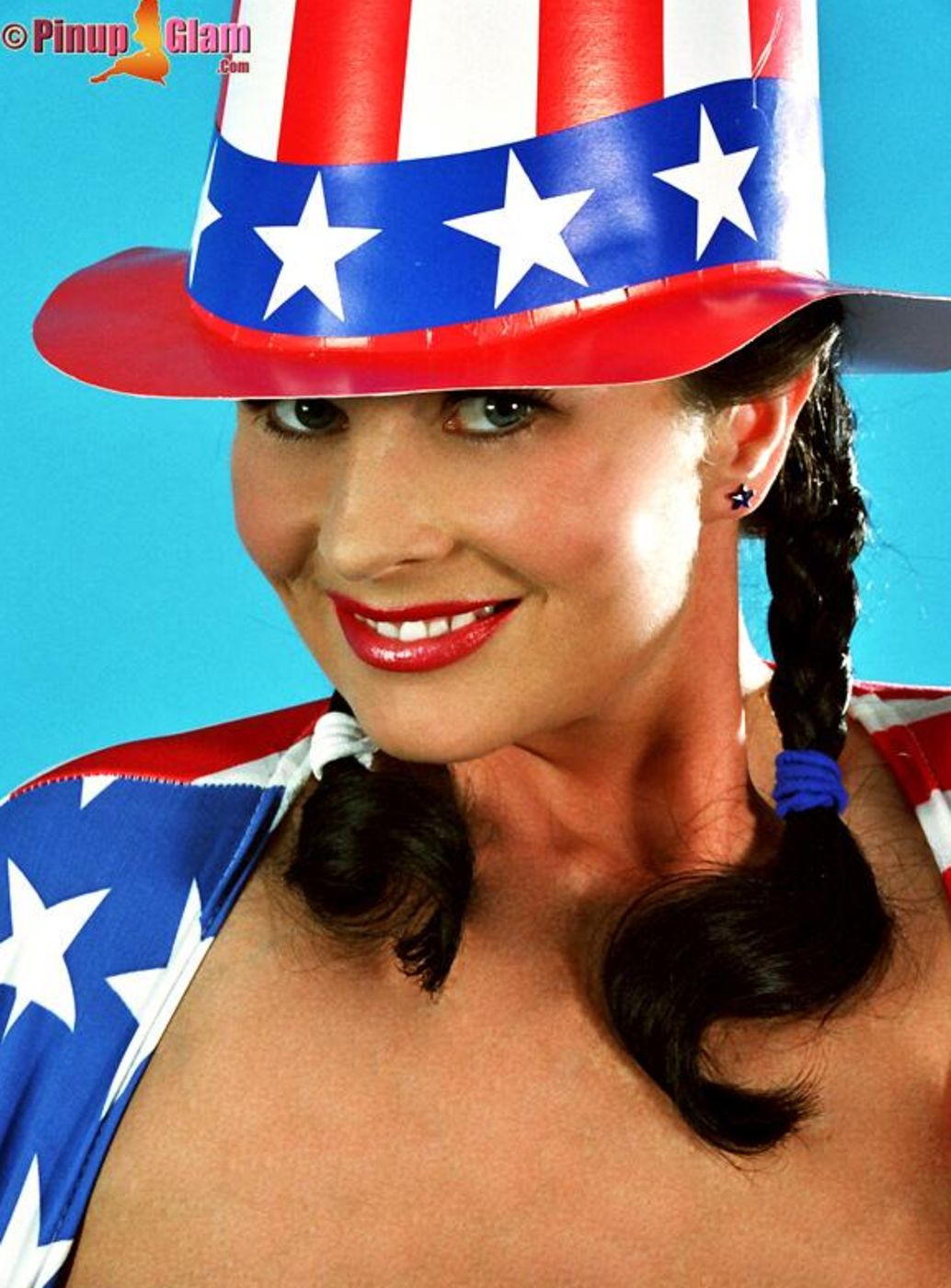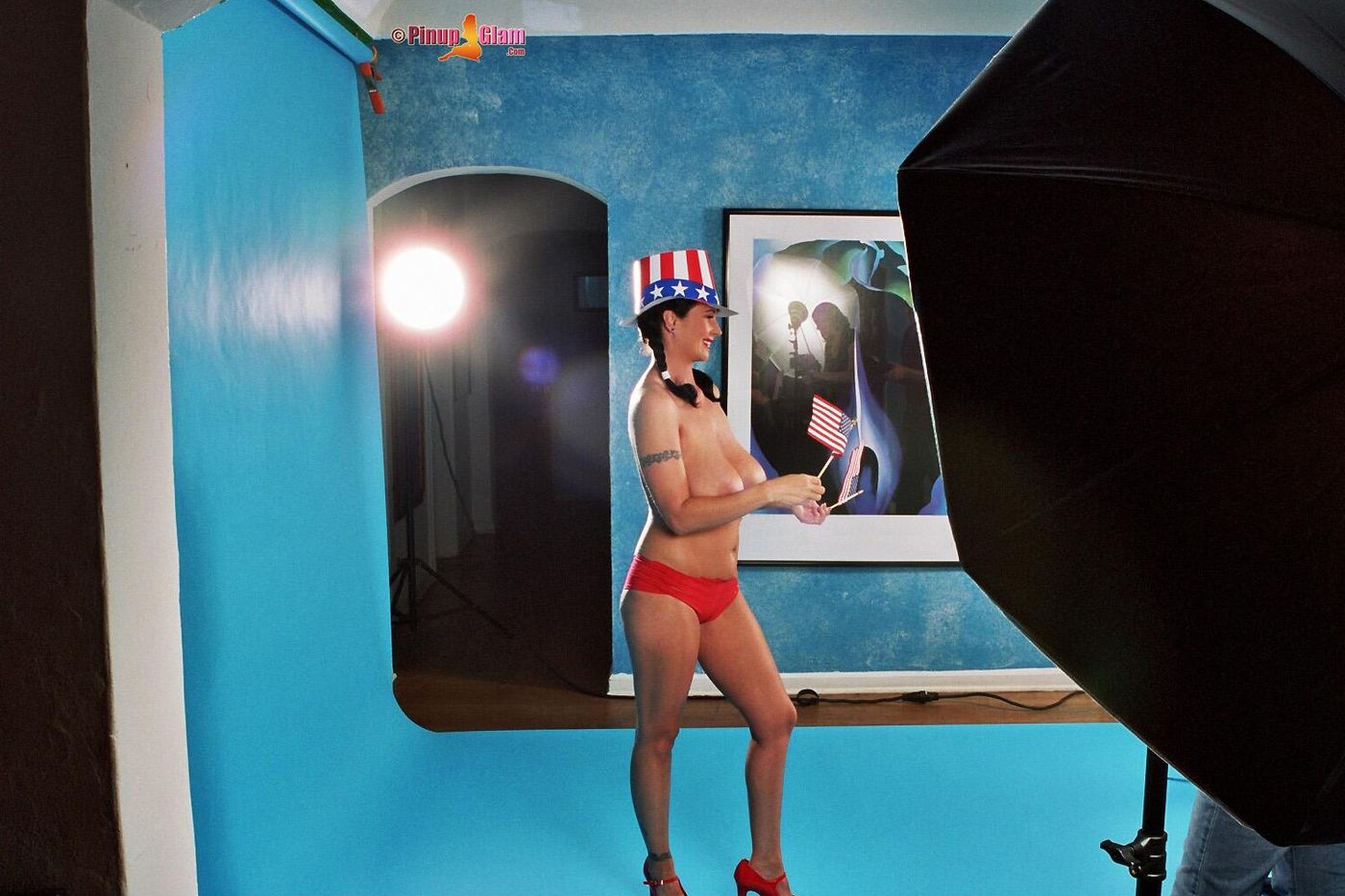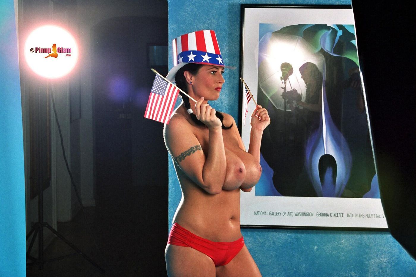 Brunette Taylor Kennedy wearing red hot undies proudly showing her huge breast.