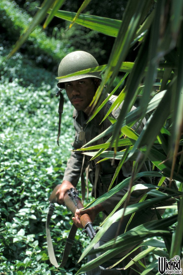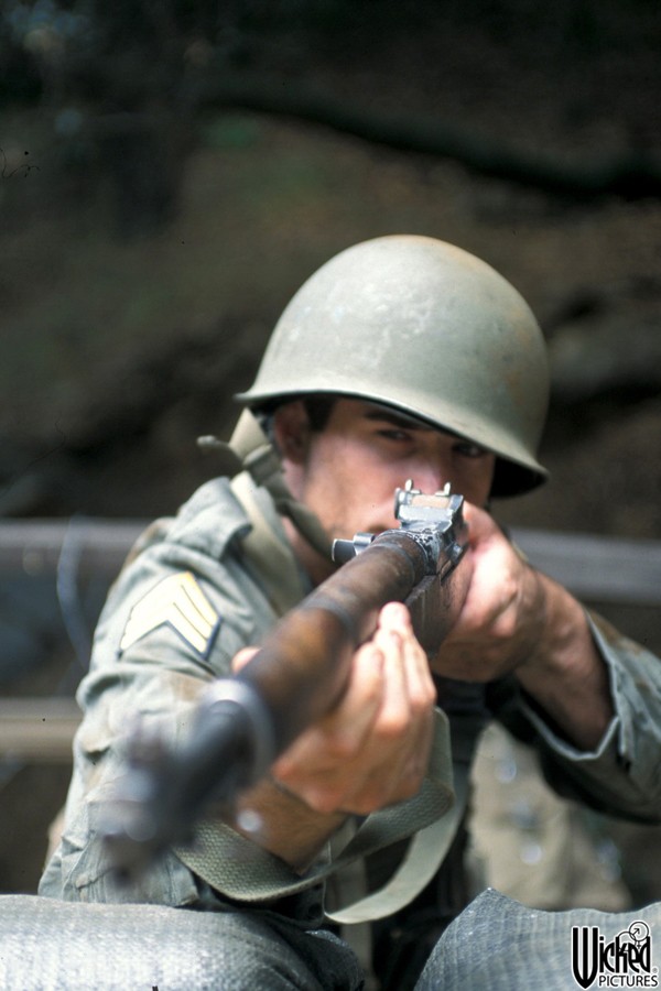 Foxy blonde nurse Terra Part strips in the woods and fucks with a horny soldier.