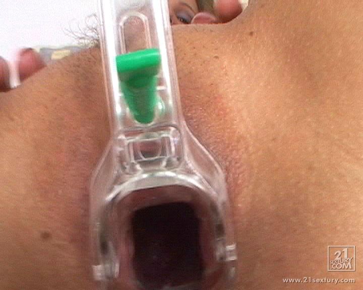 Tiffany Diamond strips all of her clothes for the camera and toys her shaved pussy.