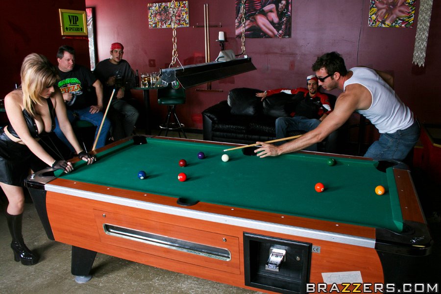 Slutty blonde babe Tyla Wynn strips on the pool table and gets fucked hard.