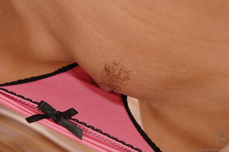 Busty brunette veronica Vanoza stripping pink lingerie and revealing tight ass.