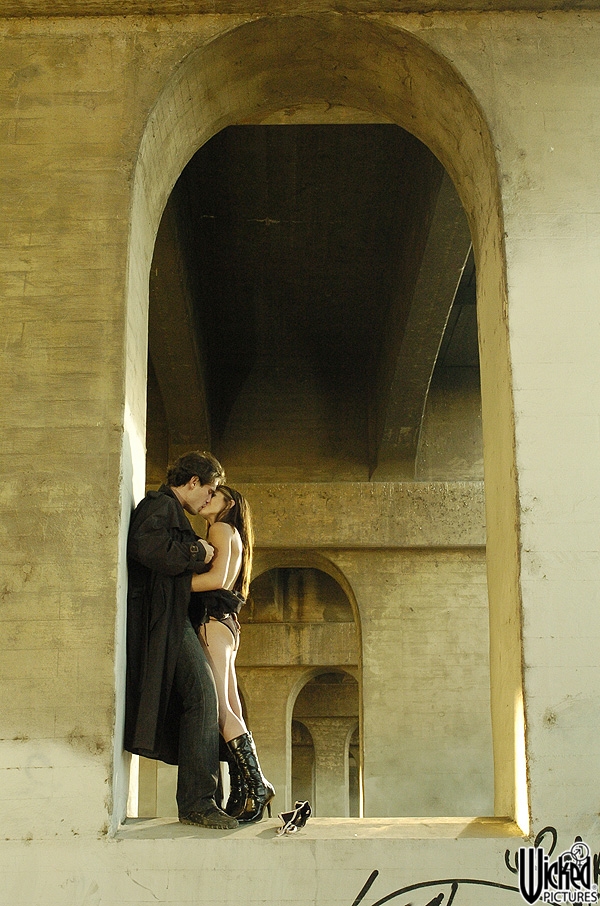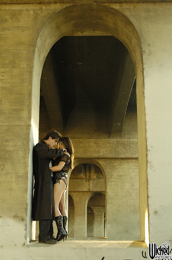 Frisky Violet Blue seduced her boyfriend into making sex at an old building.
